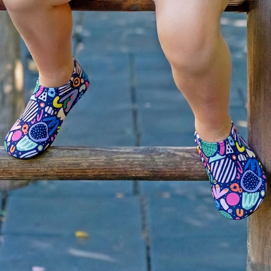 Get ready to step into a world of colour with our Geo Slipfree swim shoes! With a super fun geometric pattern bursting with bright, happy colours, these shoes are made for non-stop adventure—whether you’re splashing in the water or running wild on land. Comfy, grippy, and oh-so-playful, they’re the perfect sidekick for little explorers!