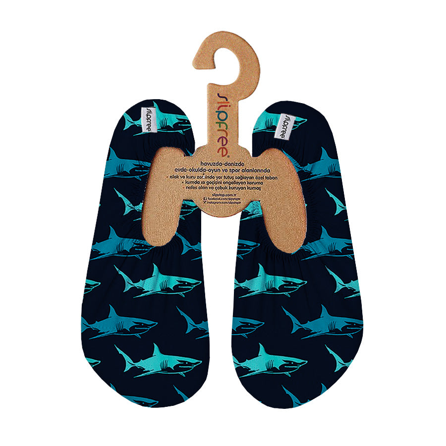Get ready to chomp, splash, and play in our Big Blue Slipfree barefoot shoes! With speedy teal and blue sharks zooming across a deep-sea navy background, these super grippy, non-slip water shoes are perfect for little explorers who love big adventures! Whether you're dodging imaginary jellyfish, racing the waves, or just stomping around at soft play, these shark-tastic shoes will keep up with every wild adventure!