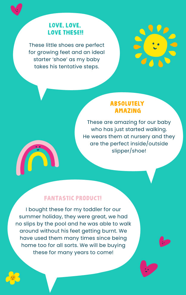 I bought these for my toddler for our summer holiday, they were great, we had no slips by the pool and he was able to walk around without his feet getting burnt. We have used them many times since being home too for all sorts. We will be buying these for many years to come!