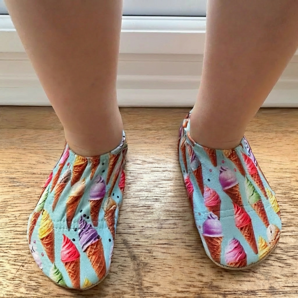 The stretchy elastic nature of Slipfree® shoes means that they span more than one shoe size which is great news for those fast growing children's feet!. We know it's always tempting to buy bigger on children's shoes to give them some room to grow, but with Slipfree® shoes and their stretchy design, we would recommend to buy true to your child's foot size as the stretch in the design will allow the give for growing room