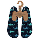 Get ready to chomp, splash, and play in our Big Blue Slipfree barefoot shoes! With speedy teal and blue sharks zooming across a deep-sea navy background, these super grippy, non-slip water shoes are perfect for little explorers who love big adventures! Whether you're dodging imaginary jellyfish, racing the waves, or just stomping around at soft play, these shark-tastic shoes will keep up with every wild adventure!