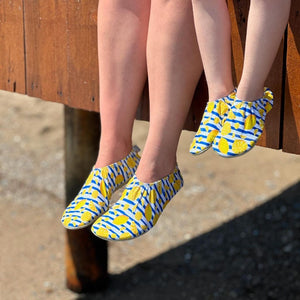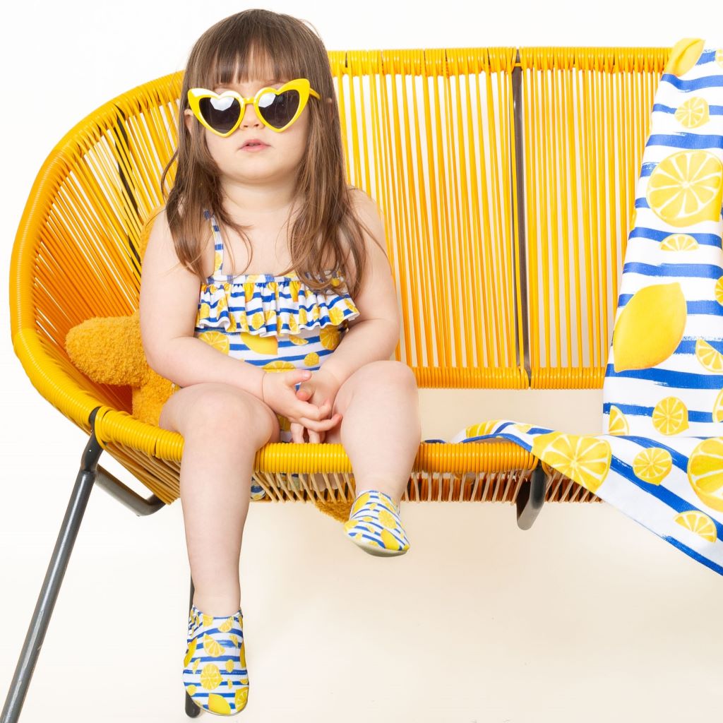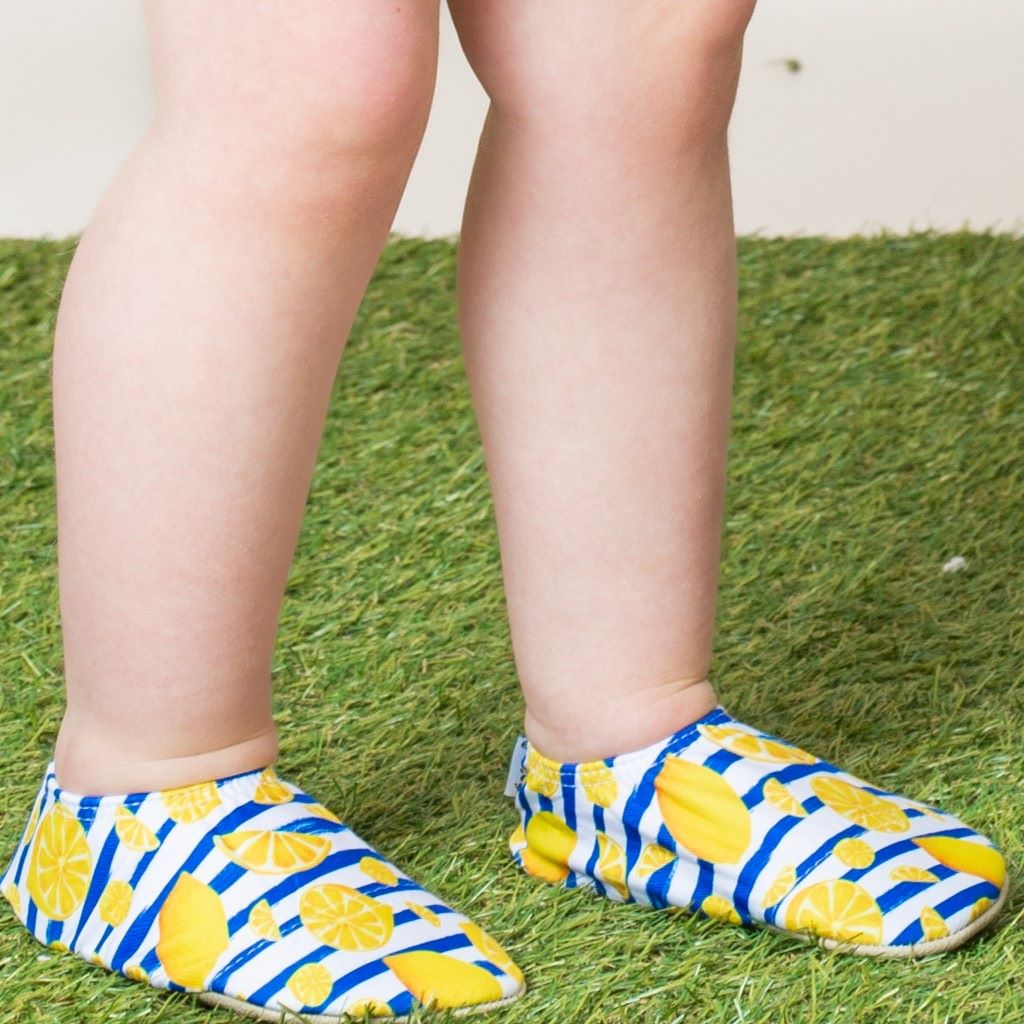 Say hello to Cello Slipfree swim shoes - fresh, fun, and full of zesty magic! Inspired by the sunny Amalfi Coast, these bright and cheerful shoes are bursting with juicy yellow lemons, sparkling blue waters, and endless summer vibes. Perfect for little feet ready to splash, play, and soak up the sunshine!