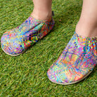 Step, splash, and shine in our Lisbon Slipfree water shoes! With a magical mix of purple, coral pink, green, and blue, these super cool shoes bring a rainbow of fun to every adventure. Whether it's poolside play or sandy adventures, get ready to brighten up every jump, skip, and splash!