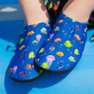 Splash! Tiny feet zoom through a lively underwater world on Nemo, filled with schools of playful fish. Every hop, twirl, and dart feels like an ocean adventure waiting to happen. From playground races to poolside fun or indoor explorations, little toes stay safe and comfy. Children will love bringing the vibrant sea to life with every step in Nemo.