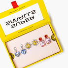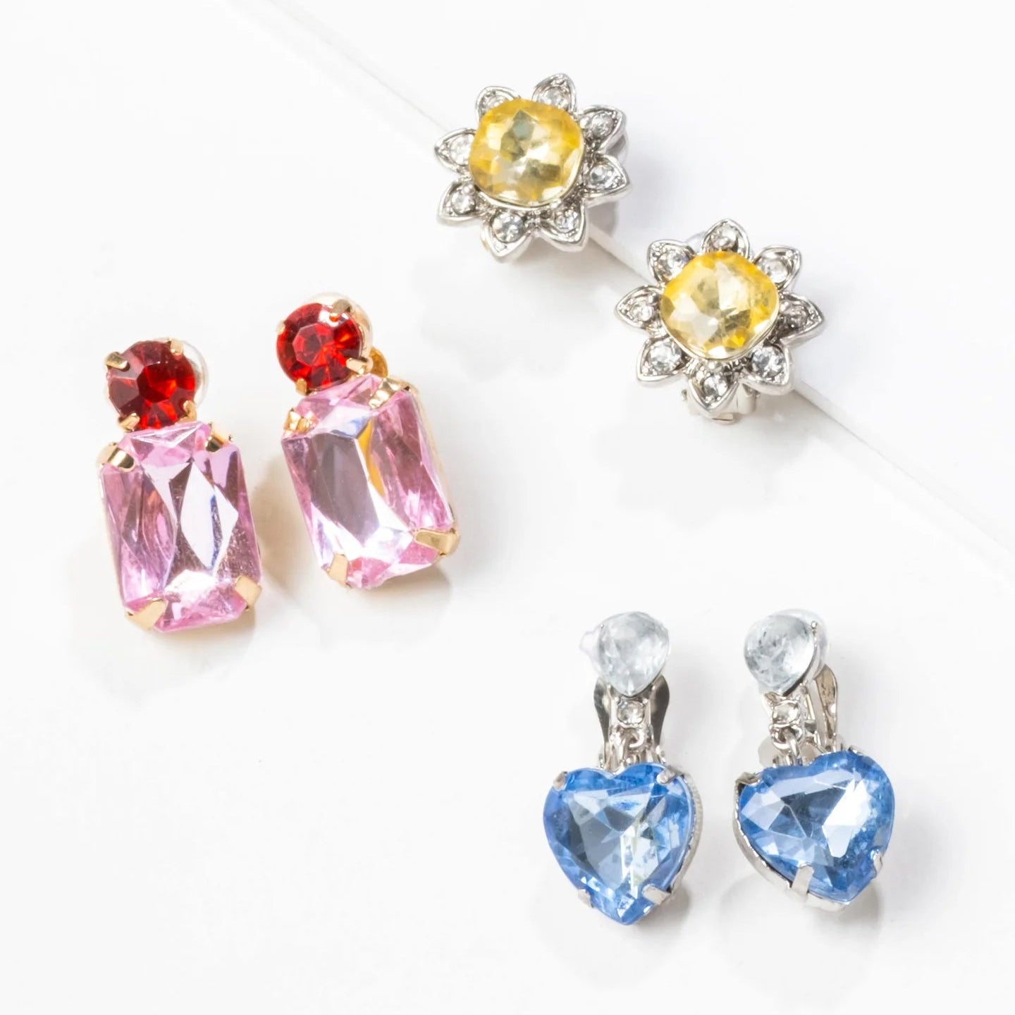 Choose from blue hearts, yellow flowers, or pink “emerald-cut” gems - or, take after the grown-ups and mix them all to create your own marvellous ear stack!