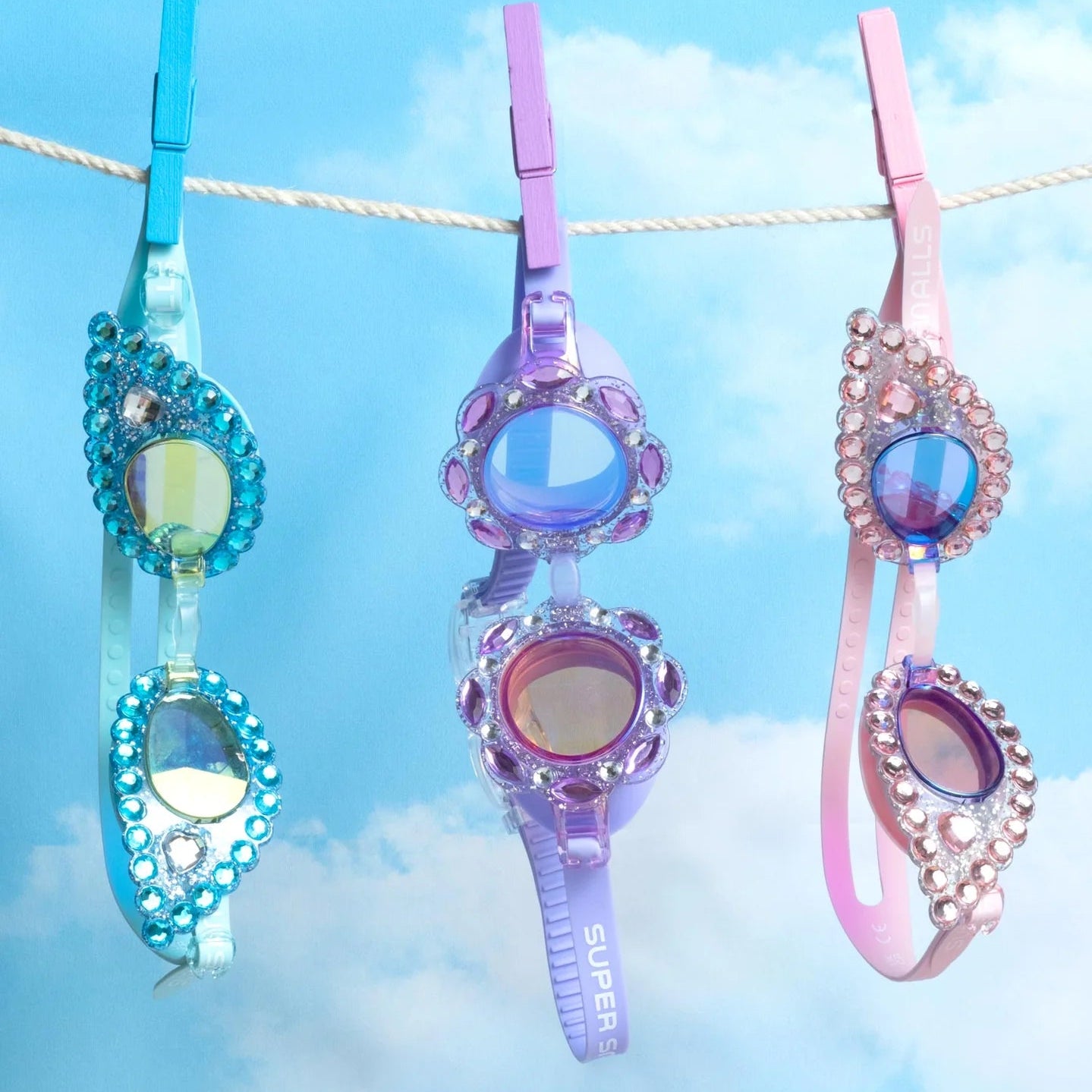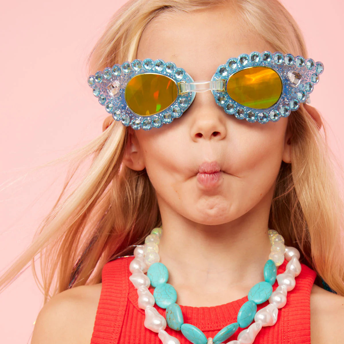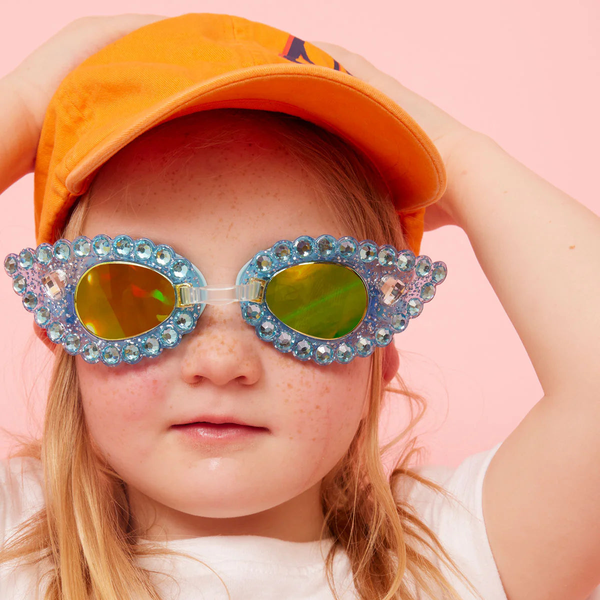 Dive in style with these show-stopping goggles that shimmer with blue sparkly gems. Their reflective lenses add an extra touch of underwater magic, perfect for aspiring sea explorers.