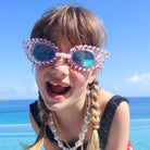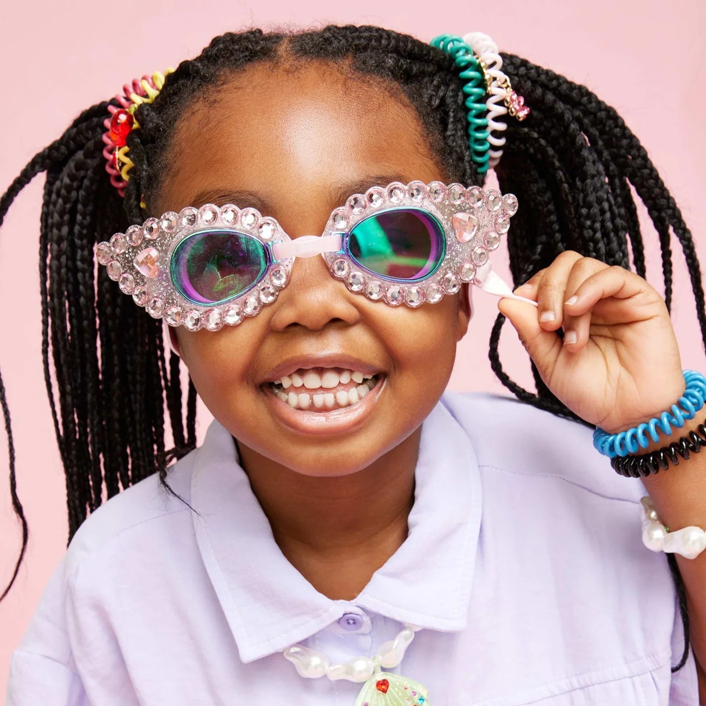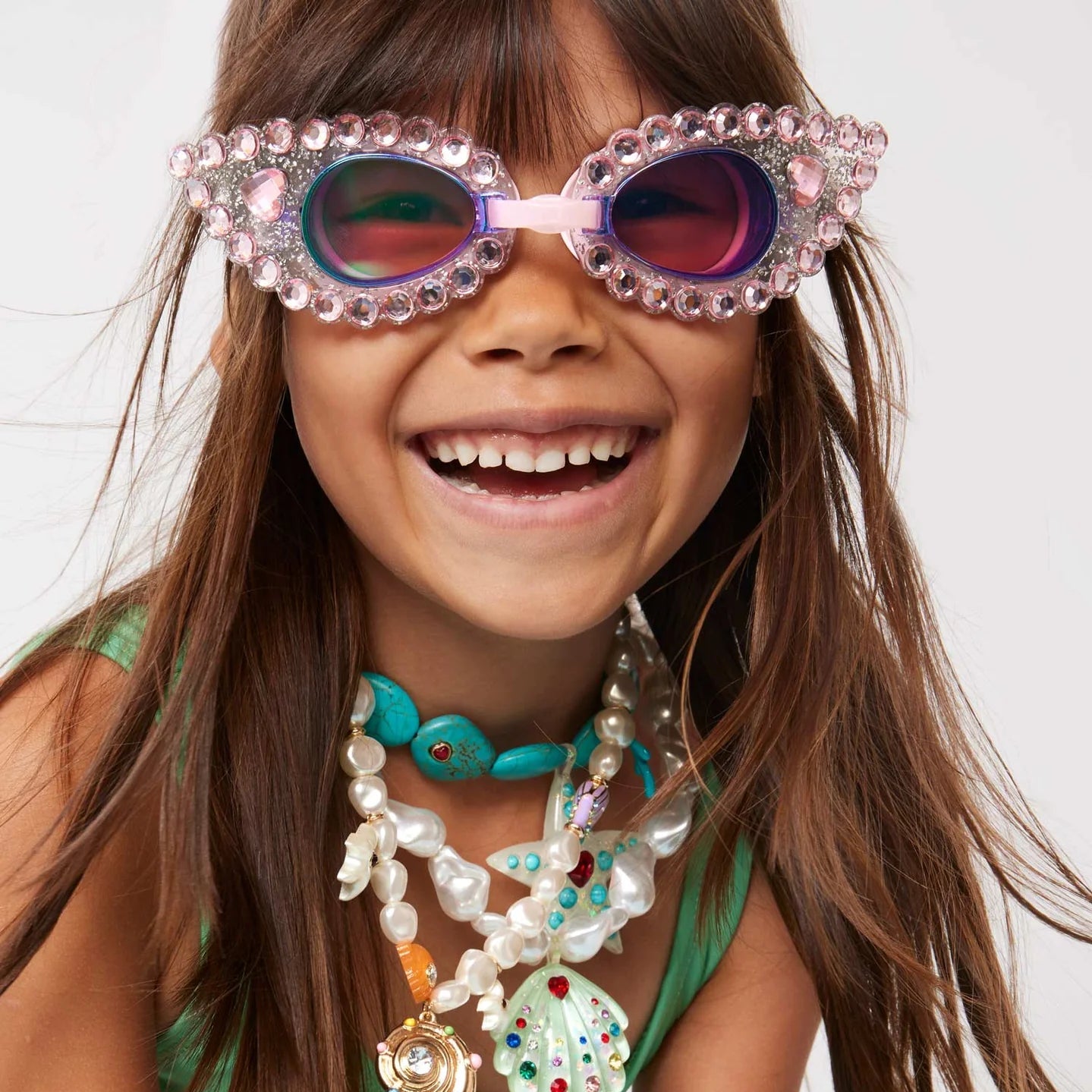 Our best-selling kid's goggles feature glittery frames covered in pink gems, plus SUPER cool iridescent lenses for the ultimate vacation statement. With a watertight seal and a comfy adjustable strap, you’ll be ready to make a SPLASH.