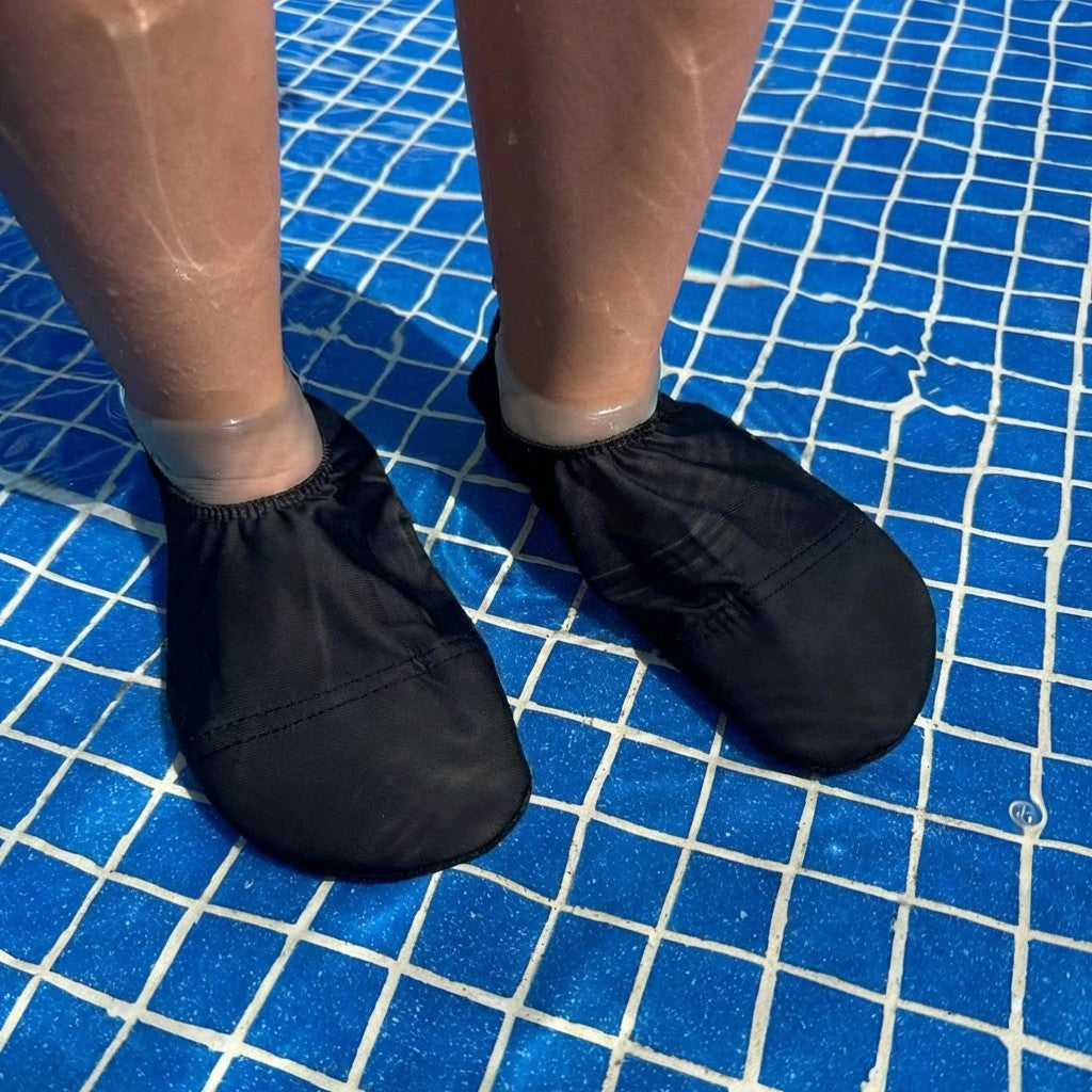 Grippy soles to help prevent slipping No more hopping on hot sand & floors Lightweight & Easy to swim in Help say Bye Bye to Verrucas Super Soft & Stretchy, easy to put on Help Protect from owchies underfoot Sun Safe UPF50+NOT SURE WHICH SIZE?