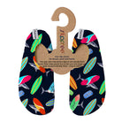 Ride the waves with Daniel, where colourful surfboards glide across the sea alongside cheeky sharks. With our surfboard design on their feet, every step feels like catching the perfect wave.