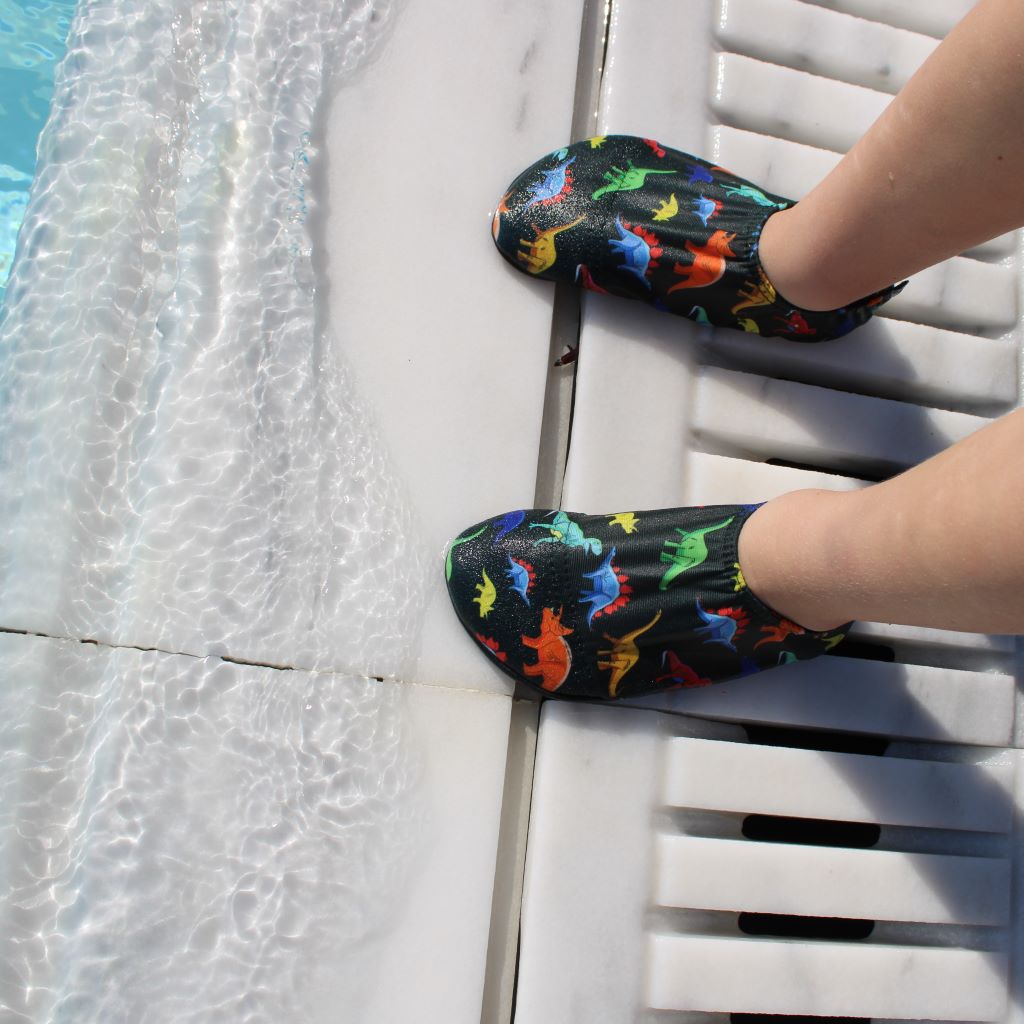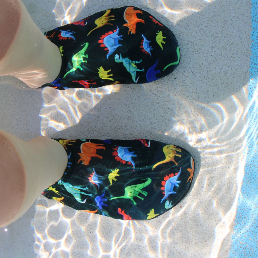 Grippy soles to help prevent slipping No more hopping on hot sand & floors Lightweight & Easy to swim in Help say Bye Bye to Verrucas Super Soft & Stretchy, easy to put on Help Protect from owchies underfoot Sun Safe UPF50+NOT SURE WHICH SIZE?