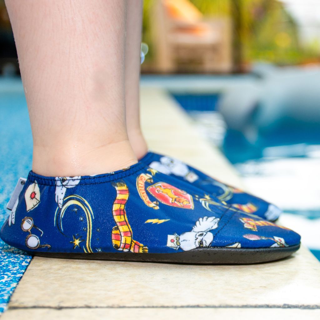 Get ready to soar into adventure with these magical Hedwig Slipfree swim shoes! Named after Harry Potter’s loyal snowy owl, this enchanting design features a flock of wise grey owls gliding across a deep navy blue sky. With every step (or splash!), you'll feel like you're flying through the wizarding world - no broomstick required!